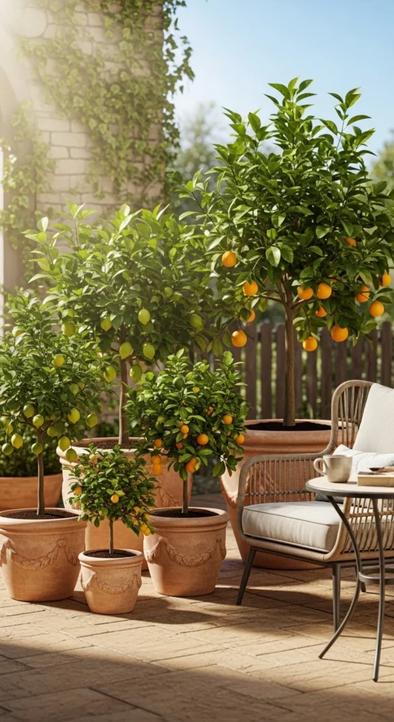 7. Citrus Trees in Matching Clay Planters