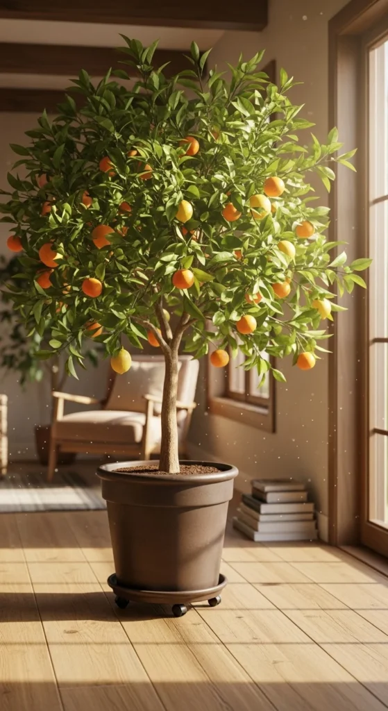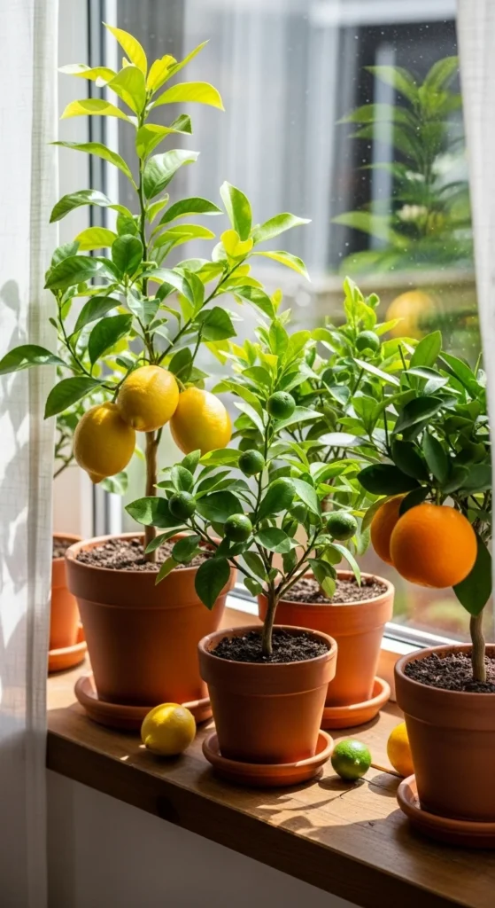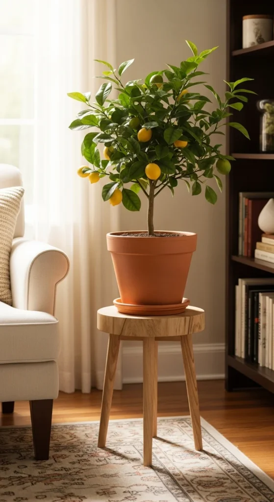 Group multiple citrus trees to create an indoor grove. Use matching pots for a cohesive look. The mixed fragrance of lemons and oranges adds freshness. Add a small humidifier nearby for happy leaves.
