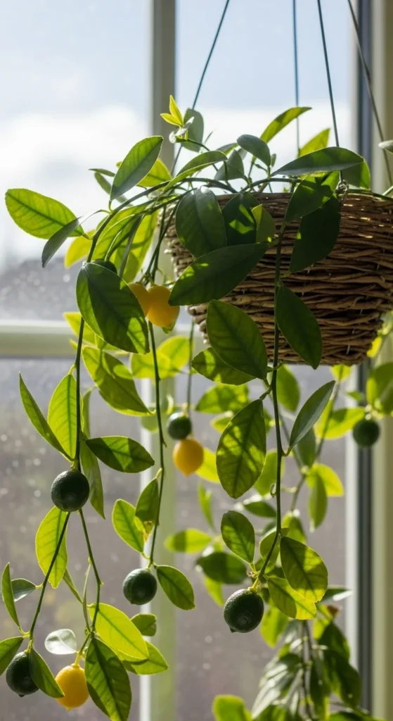 Try hanging baskets for young citrus plants. This saves floor space and looks charming near bright windows. Use lightweight soil and prune regularly to keep compact. Perfect for small apartments.