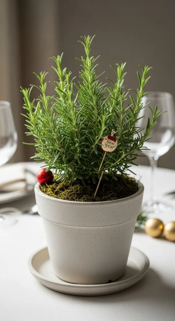 Make rosemary the star of your New Year table by placing it in a decorative pot. Add small ornaments or natural elements like pinecones around the base. Keep everything light so the rosemary stays the main feature. After the season, move the plant outdoors for ongoing use.