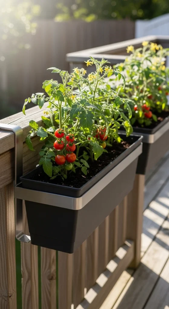 10. Balcony Railing Planters for Dwarf Tomatoes
