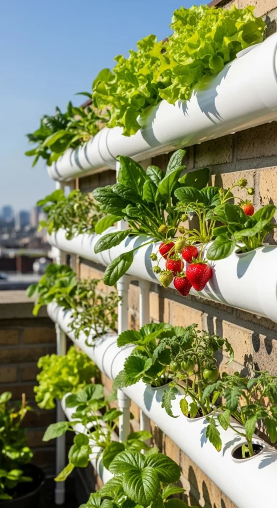 PVC pipe gardens use vertical surfaces while holding many plants at once. They suit lettuce, spinach, and small herbs.