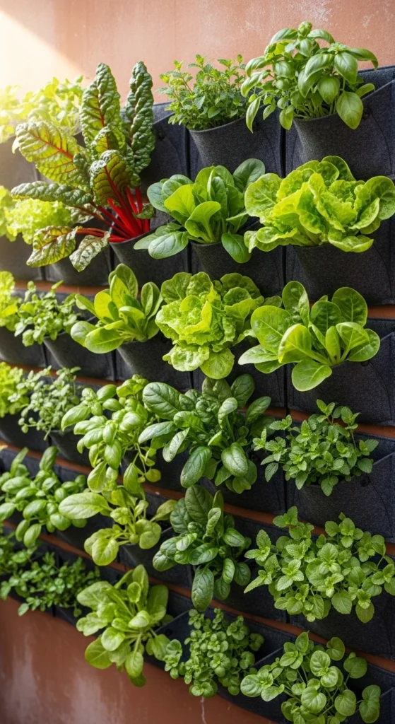 8. Wall-Mounted Pocket Planters for Leafy Greens