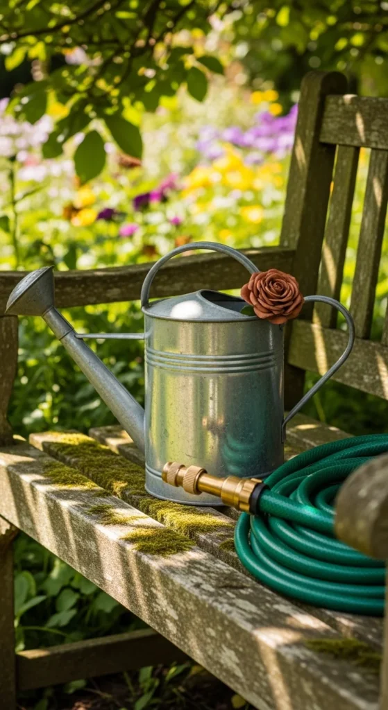 Rinse watering cans to remove algae or sediment. Check hose connections for leaks. Coil the hose neatly and hang it on a hook. If the nozzle is clogged, soak it in warm water for a few minutes. This keeps your watering tasks easier later.