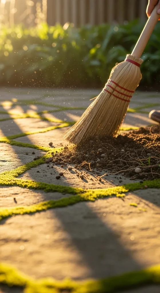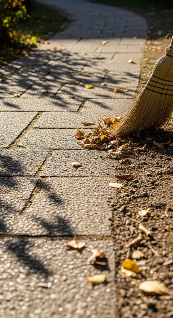 Sweep pathways to remove dirt and loose debris. If you have gravel or stones, rake them evenly to smooth the surface. Pull small weeds that pop through cracks. This gives your garden a clean, organized look. Add new gravel only if needed. You can also use a stiff brush to scrub algae off stone slabs.