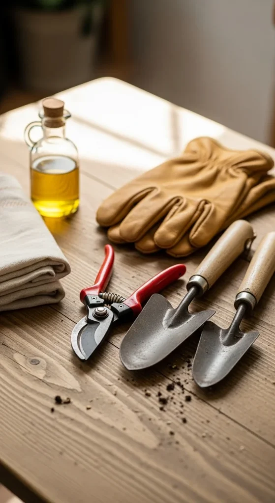 Gather all your tools and wipe off dirt with an old rag. Dry them well to prevent rust. If the blades feel dull, sharpen them using a small file. Add a drop of oil to hinges to keep movement smooth. This helps tools last longer and makes future tasks easier. Store everything in a clean bucket or hang them on hooks for easy access.