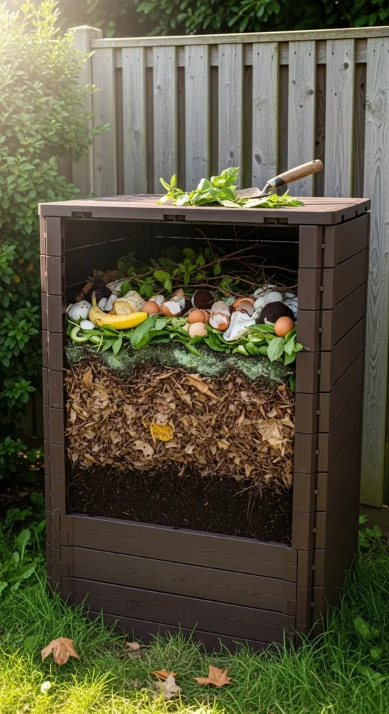 Turn your compost pile with a shovel. Break large chunks into smaller pieces. Add dry leaves if the pile feels too wet. Add water if it feels too dry. Keeping the pile balanced helps it break down faster. Use a pitchfork if you want to make turning easier. This helps create rich material for future planting beds.