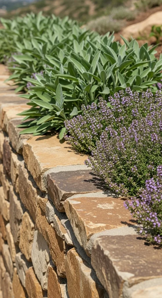 Low-growing sage and thyme create natural edging for paths or raised beds. Their silvery and green tones complement both ornamental and edible plantings. They release fragrance when brushed, adding another sensory layer to your design. Clip sprigs anytime for cooking.