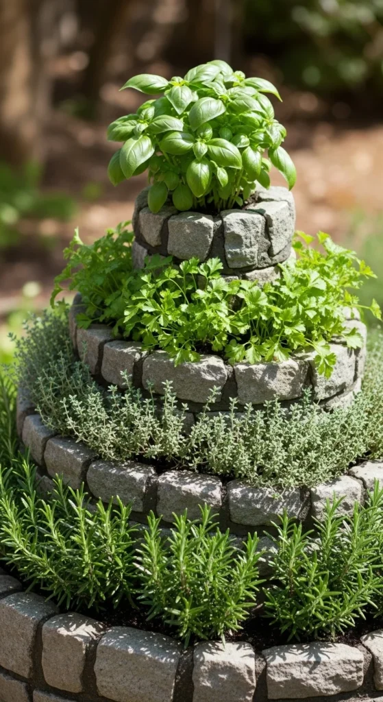Build a small herb spiral using stones or bricks. Start with taller herbs like rosemary in the center and trailing ones like thyme near the base. This layout saves space, improves drainage, and looks sculptural. It’s an art piece that doubles as a flavor garden—perfect for patios and small spaces.