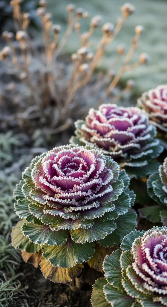 Ornamental cabbages bring stunning rosette forms and edible potential. Mix purple cabbage and savoy varieties for texture and symmetry. Place them in clusters or as a border accent. They tolerate cold, add winter color, and can be used for cooking when leaves are young and tender.
