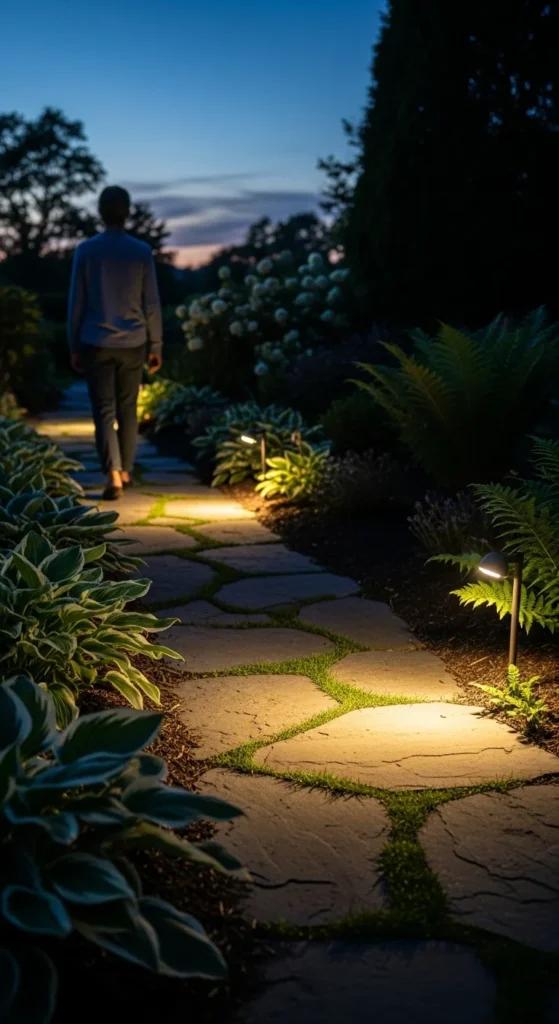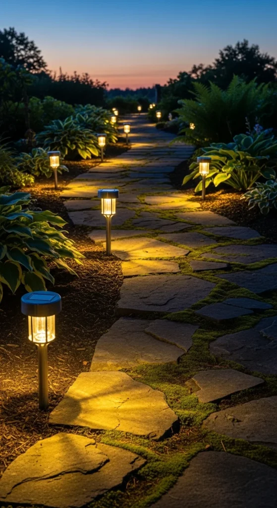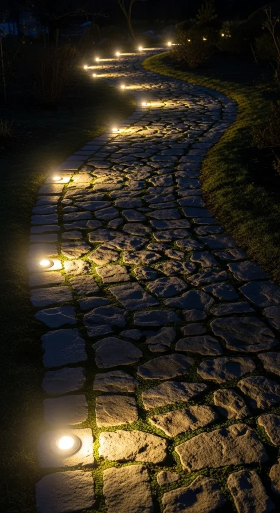 Recessed lights sit inside the path for a sleek look. Install them between pavers or in gravel paths. These lights stay protected from weather and foot traffic. Choose soft, warm lighting. Recessed lights look especially nice near modern-style gardens. They guide guests without being too bright. Clean the lenses occasionally for clarity.