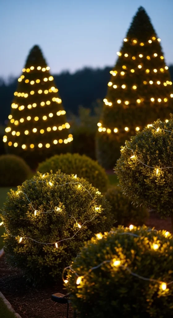 Fairy lights add magic to shrubs and small trees. Use solar versions to avoid wires. Drape them loosely so they fall naturally. Warm tones work best for a soft vibe. Fairy lights look great during gatherings or quiet nights. Keep the solar panel in a sunny spot for a strong evening glow.