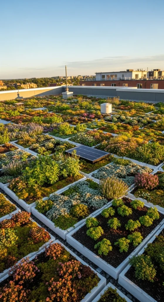 Foam planting panels reduce weight while supporting plant growth. Lay them across flat sections of the roof. Fill each cell with small drought-tolerant species. The foam helps retain moisture while keeping roots protected. This system is easy to rearrange and suits rooftops that require gentle loading. Panels also help insulate interior spaces slightly, adding practical value.