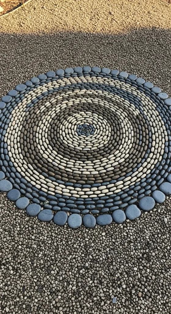 Pebble mosaics create an artistic focal point. Lay pebbles in patterns inside a mortar base. Use natural colors for a subtle look. Place the mosaic at a path intersection or entrance. You can start with a small circle to keep it budget-friendly. This adds a handcrafted touch to your path.