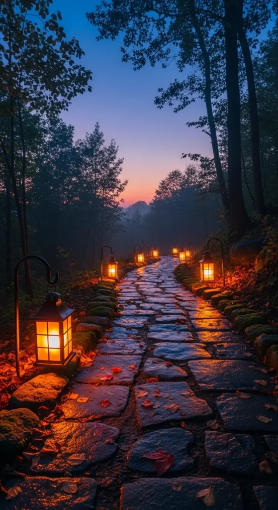 Light changes the entire feel of a path. Use solar lanterns or small LED stakes. Place them evenly along the edges. This helps guide movement at night and adds ambiance. You don’t need fancy fixtures—simple lanterns work just as well. Keep wiring minimal or choose solar for easy setup.