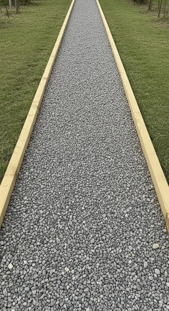 Gravel paths are easy and affordable. Spread a few inches of gravel over weed fabric to keep the walkway tidy. Add wood edging on both sides to keep gravel contained. Choose warm-toned gravel for a natural look. Rake it occasionally to keep it level. This setup works especially well between beds or leading to a vegetable garden.