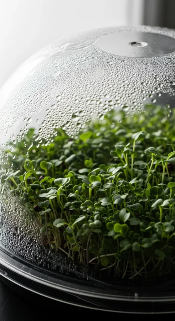 Dome covers trap humidity, creating a warm environment that speeds sprouting. Plant seeds in the tray, mist lightly, and secure the dome. When condensation forms, your seeds are in the right environment. Remove the dome once sprouts reach it. This kit grows greens quickly and reduces the need for frequent misting. The dome also protects seeds from cold indoor drafts.