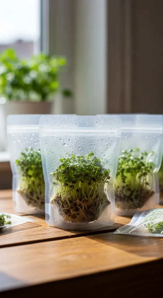 Some kits come in sealed pouches that work anywhere. Add a splash of water, seal the pouch, and keep it near light. The humidity inside helps seeds sprout rapidly. These small kits are perfect for office desks or travel situations. They require almost no cleanup and deliver tiny harvests ideal for salads or garnishes. Once done, compost the pouch.