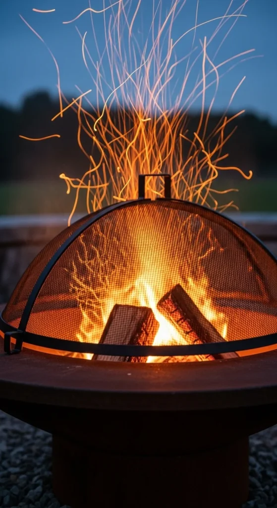 Choose a domed or flat screen that fits your fire pit. A budget option is buying a universal-fit screen. Use the screen during windy nights. Clean it regularly to prevent ash buildup.
