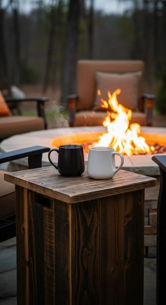 Choose a compact table made of metal or treated wood. Place it near the seating zone. A budget version uses a repurposed plant stand. Wipe it regularly so ash doesn’t collect on the surface.