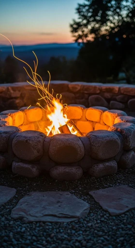 Arrange large stones in a ring. Fill the inside gap with gravel or sand. A budget method uses leftover stones from other garden projects. Keep the ring low so heat flows freely.