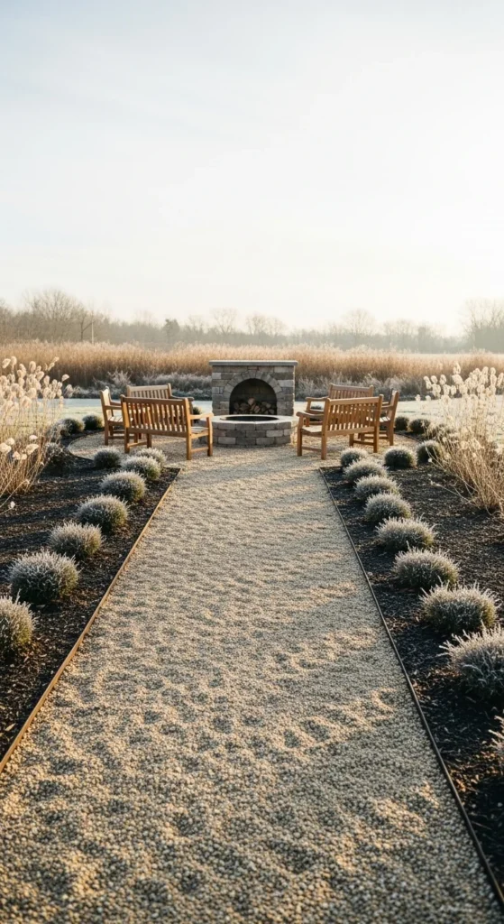 A defined pathway adds charm and gives guests a clear route to the fire area.
