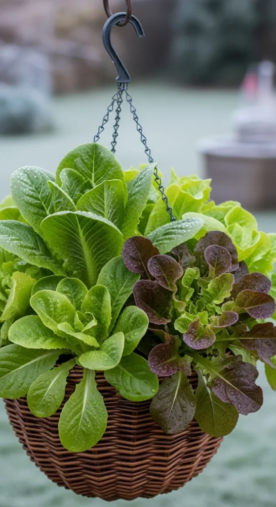 Hanging baskets make salads easy to access. The elevation helps the container warm quickly. Use a lightweight mix and sow multiple varieties. Because the soil dries faster up high, check moisture more often. Snip outer leaves and let the plants continue producing. If temperatures fall suddenly, bring the basket indoors for the night. This style works well on balconies where floor space is limited.