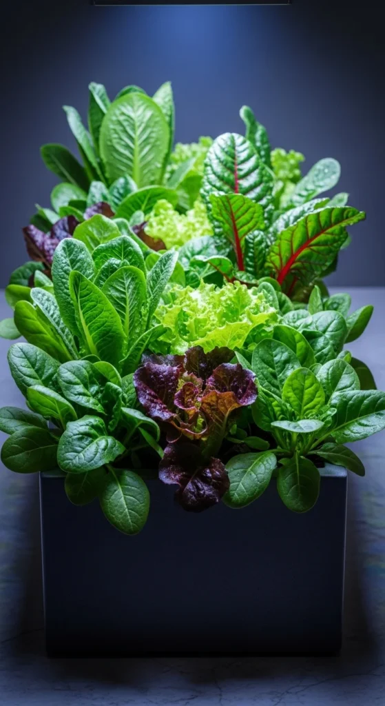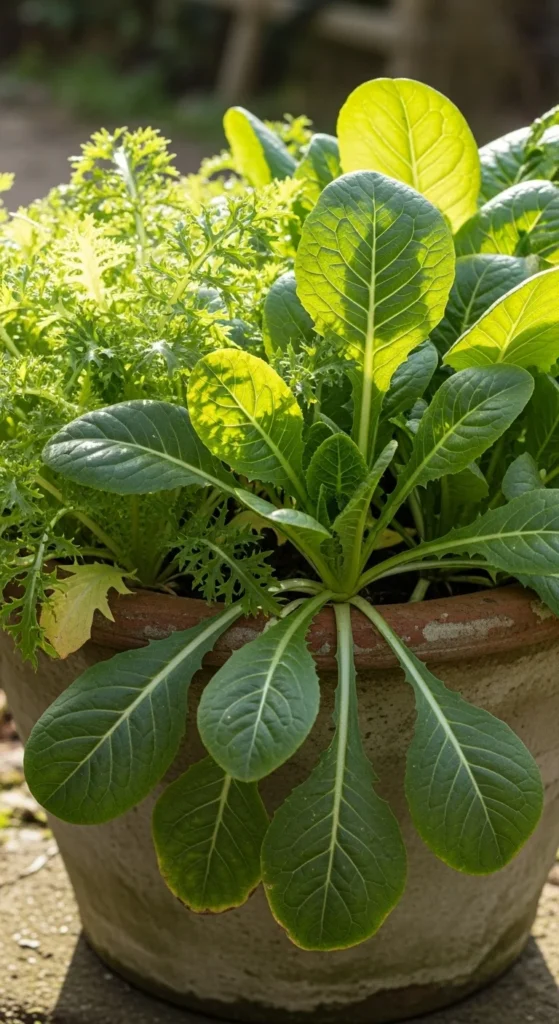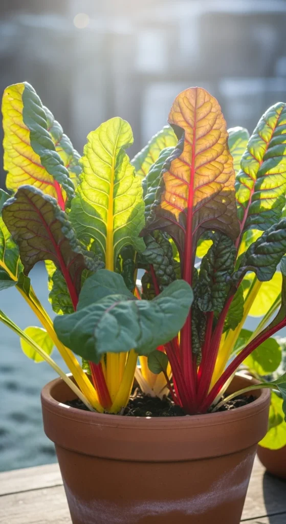 Swiss chard is resilient and colorful, making it perfect for winter containers. Use deep pots with good drainage. Plant a few seeds and thin once they sprout. Trim outer leaves as needed. The plant continues growing even in colder weather. Place pots where they get steady light. Water sparingly, as chard dislikes soggy soil. This adds bold color and texture to winter salads.