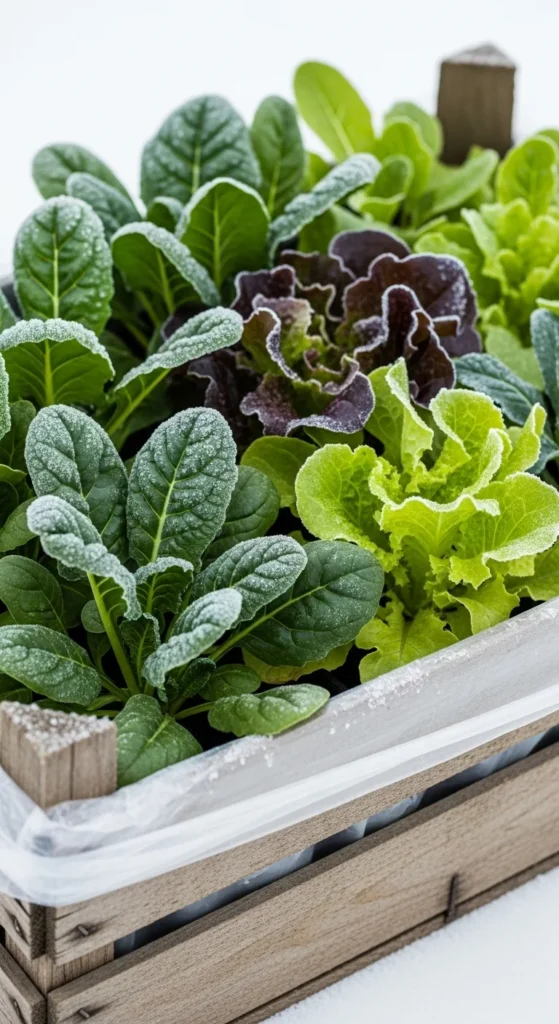 Wooden crates make excellent winter salad planters. Line the inside with plastic, poke drainage holes, and fill with loose soil. Plant mixed greens densely and thin as needed. The crate keeps soil warm because of its thick sides. Set it in a bright spot and water lightly. This method recycles materials you already have and creates charming patio planters.