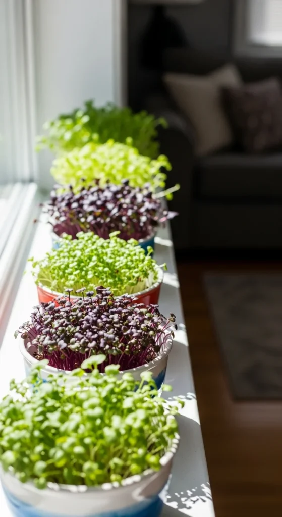 Microgreens deliver quick harvests year-round. Use shallow trays or recycled food containers. Add a thin layer of soil, sprinkle seeds densely, and mist daily. Place them on a window that gets bright winter light. The warmth from indoors helps the greens grow thick. Cut them with scissors when they reach a couple of inches tall. This setup suits tight spaces and brings steady flavor to salads without long wait times.