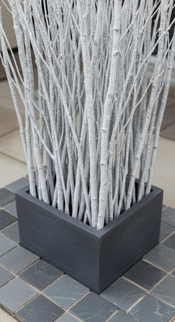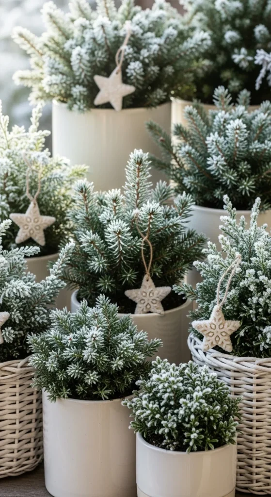 Beige warms the look subtly while staying aligned with winter’s quiet mood. Use inexpensive clay pots and paint them with a matte beige tone.