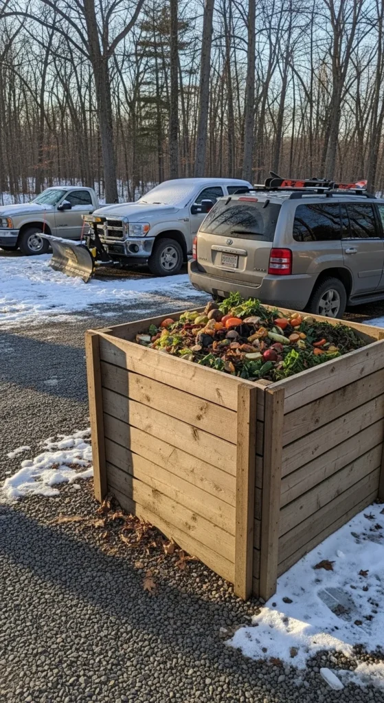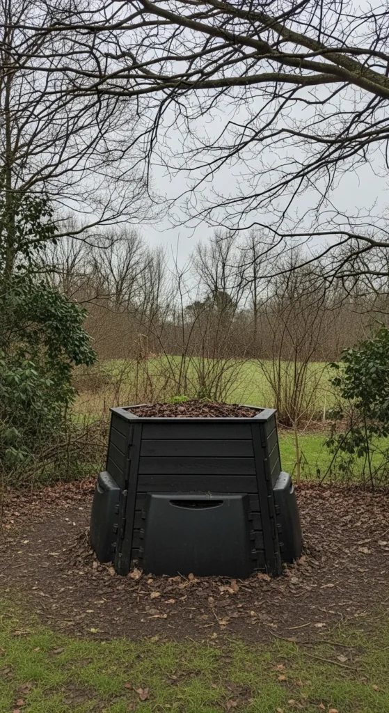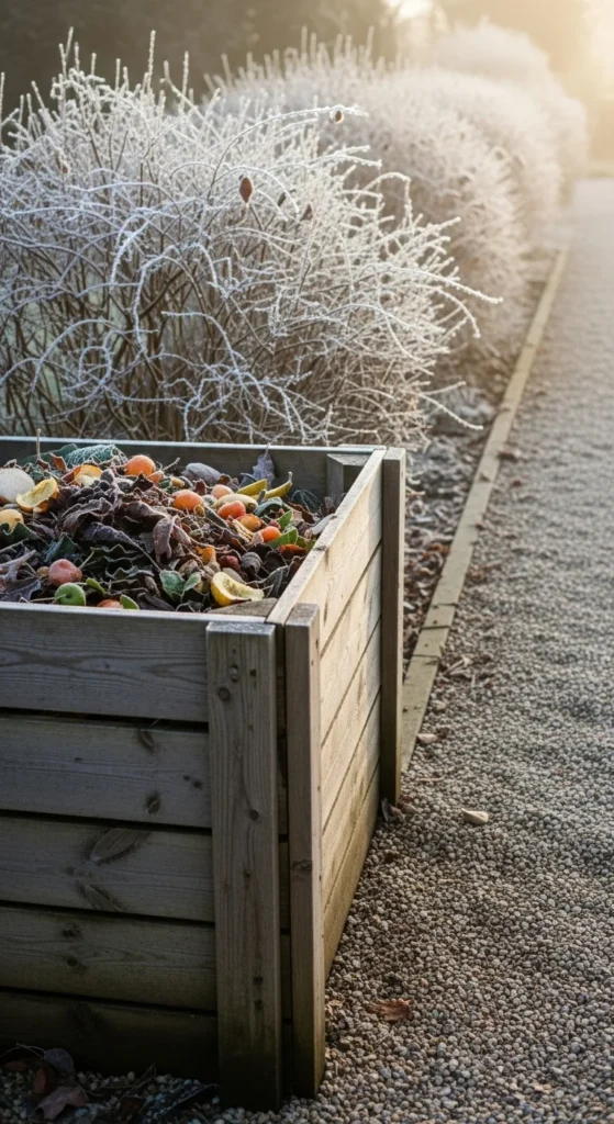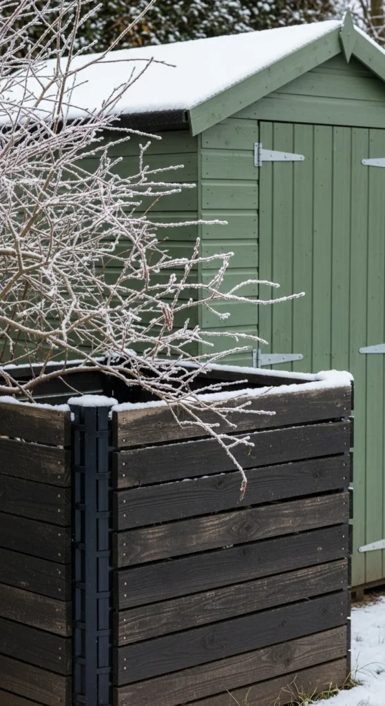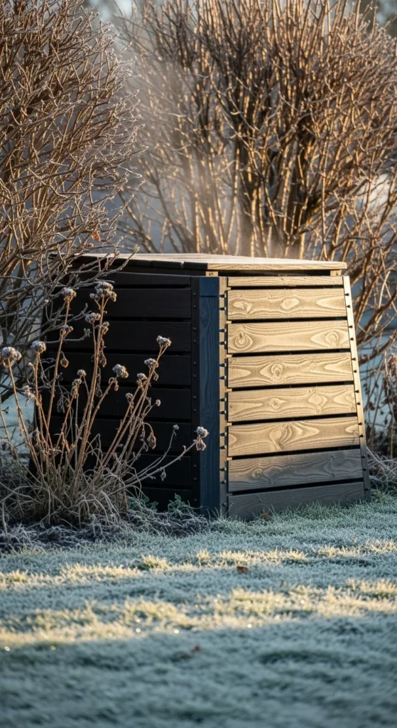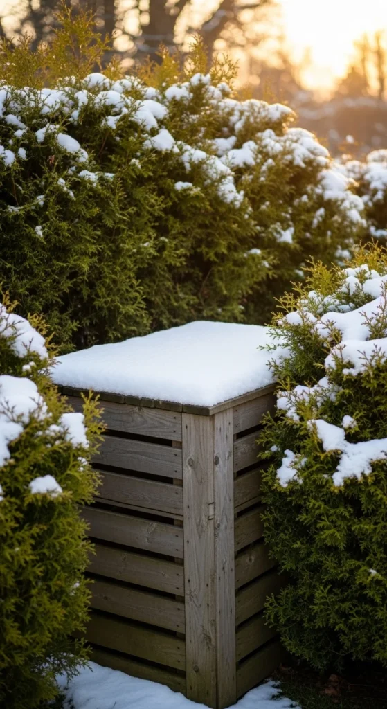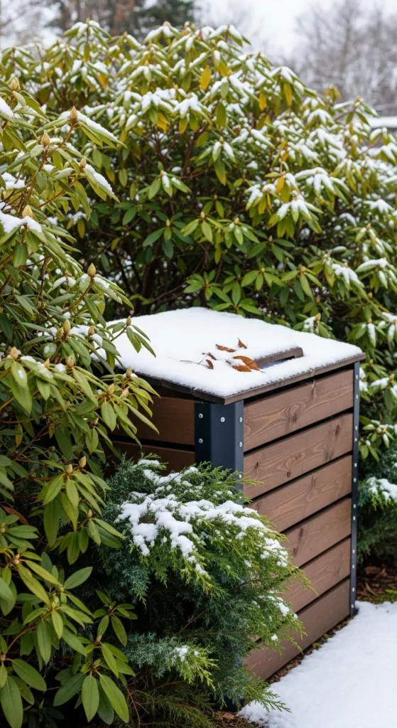 Winter shrubs offer natural screening. Place your bin behind a row of evergreens or dense foliage. This hides the bin while still keeping it reachable. Leave a small access path so you can move comfortably during cold weather. Add mulch in this path to stabilize traction. This approach keeps the compost site visually calm.