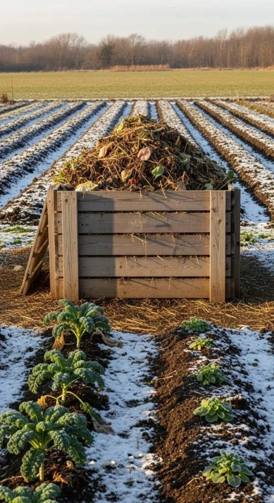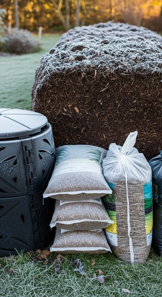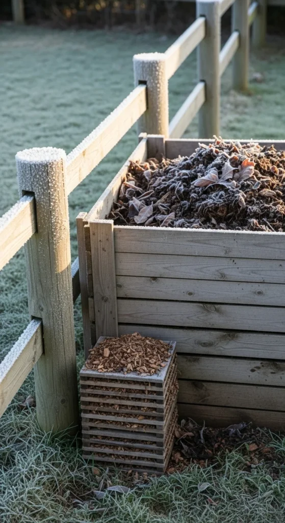 Set up a mulch station beside your compost. This creates a supply of dry material you can mix in during winter. Use bags or a small frame to hold shredded bark or leaves. Mix a small scoop each time you add kitchen scraps. The proximity saves time and keeps the compost healthier.