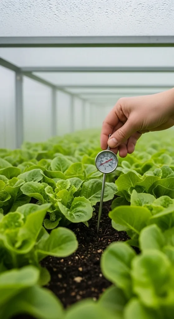 A soil thermometer helps you adjust watering and airflow quickly. Insert it a few inches deep in several spots. If soil gets too cold, add extra mulch or warm-water jugs. If it warms too much, open vents. Quick adjustments keep lettuce moving steadily. This simple tool helps you stay ahead in winter conditions.