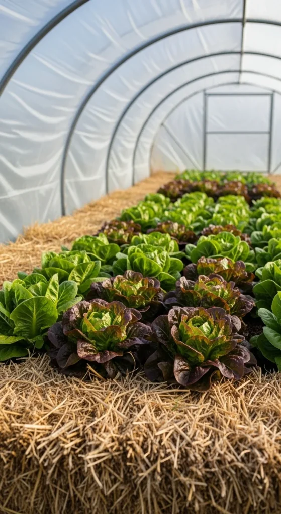 Straw bales act as natural insulation. Place them along the outer edges of beds. They help trap warmth in the soil and shield roots from cold drafts. Replace bales as they break down. This method is inexpensive and effective for large or small greenhouse setups.