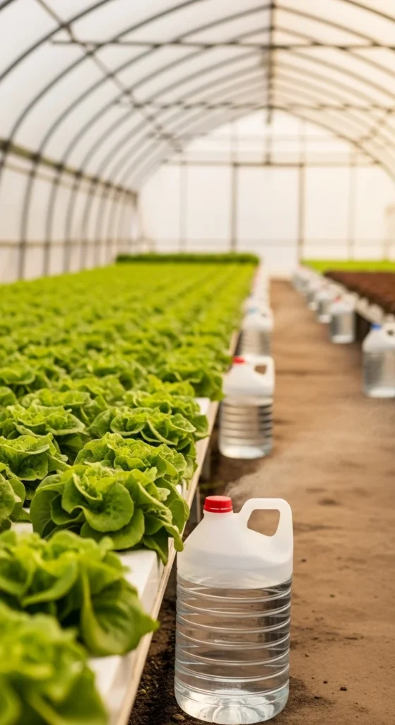 Warm-water jugs placed beside beds release gentle heat as they cool. Fill dark-colored jugs with hot tap water each morning. Place them near lettuce rows to support warmer night conditions. This simple method stabilizes temperatures cheaply. The steady heat helps seedlings settle faster and encourages consistent leaf production.
