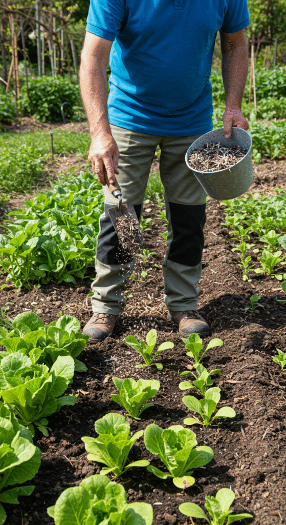 Aged manure from cows, horses, chickens, or rabbits adds organic matter and nutrients. Always compost or age manure before use to avoid burning plants. Work it into soil before planting or top-dress around crops. It’s especially helpful for heavy-feeding vegetables like corn, tomatoes, and squash.