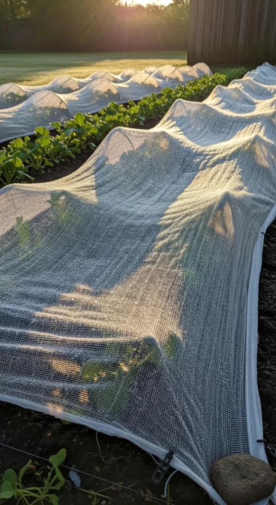 Use lightweight fabric to shield young plants from flying pests. Reusable and cost-effective. Secure edges to prevent gaps. Remove during flowering for pollination. Ideal for aphids, flea beetles, and cabbage moths.