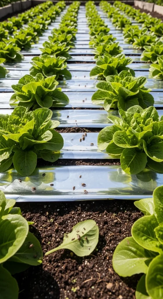 Reflective mulch confuses aphids by bouncing light onto leaves. Use aluminum foil or reflective plastic. Helps reduce infestations without chemicals. Cheap DIY option: foil from kitchens or craft stores. Replace after heavy rain for best results.