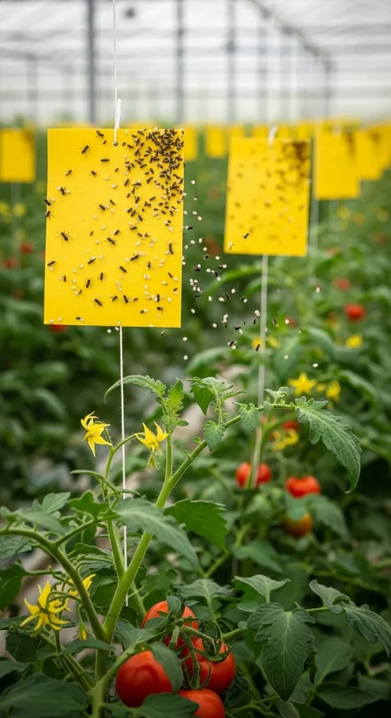 Sticky traps monitor pest populations like whiteflies and aphids. Place near vulnerable plants. Replace when full. They are inexpensive and provide early warnings, allowing targeted interventions rather than broad sprays.