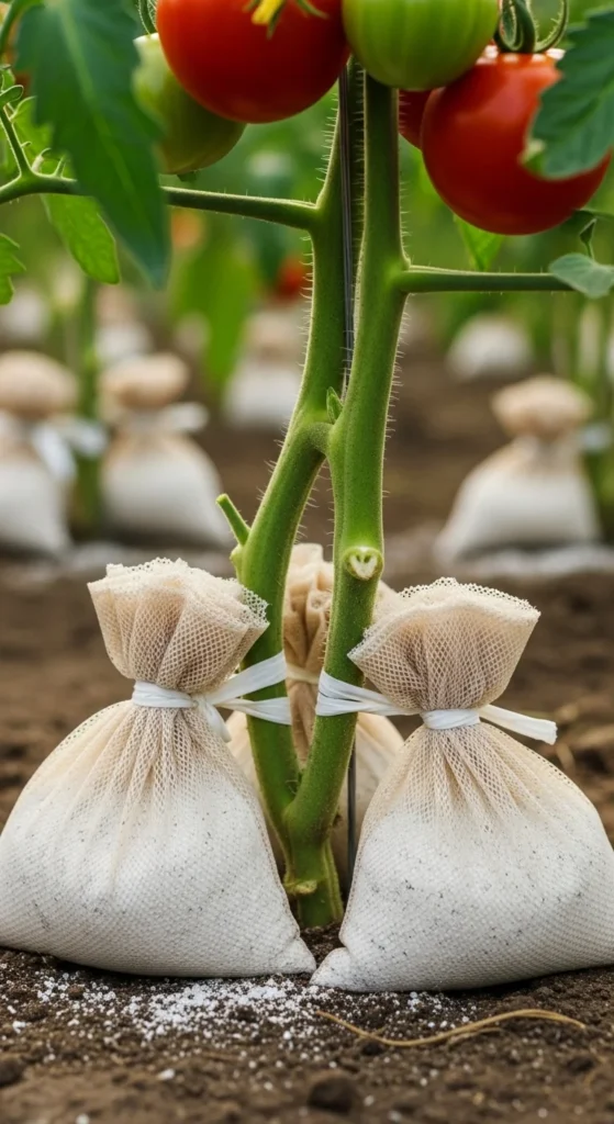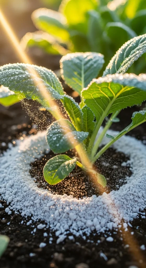 Diatomaceous earth (DE) dehydrates soft-bodied insects like slugs and caterpillars. Sprinkle a thin layer around plant bases and repeat after rain. Wear gloves and avoid inhaling dust. For extra protection, combine with crushed eggshells or coffee grounds. A DIY pouch of DE inside pantyhose can be tied around plants for safer application.