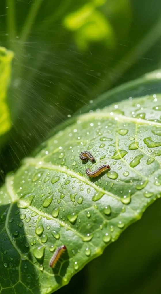 Target larvae early using Bt or garlic sprays. Focus on feeding areas. Repeat as needed for effective control. Works naturally, safe for beneficial insects, and prevents long-term damage.