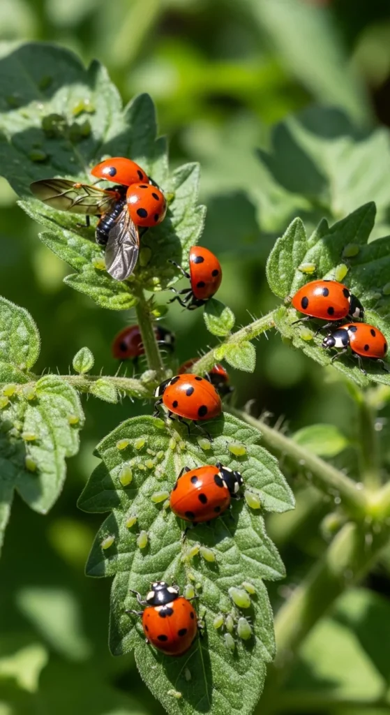 Ladybugs eat aphids, mites, and other small pests. You can attract them by planting dill, fennel, or alyssum. Avoid chemical sprays so these helpful insects can thrive and handle pest control naturally.