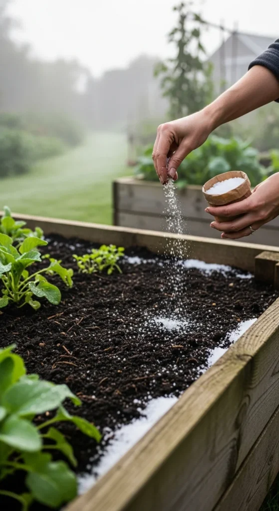 Epsom salt repels slugs without harming plants. Sprinkle it around garden beds or pot rims. It adds magnesium to the soil while discouraging crawling pests. Just don’t overdo it — a light dusting works best.