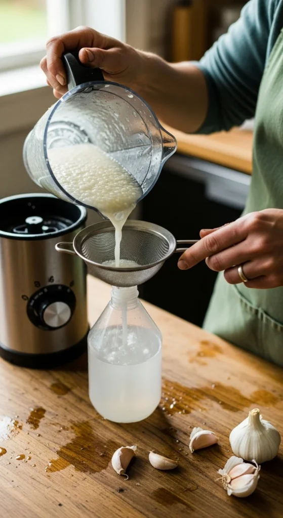 Garlic’s strong scent repels pests naturally. Blend a few cloves with water, strain, and mix in a teaspoon of liquid soap. Spray it around your plants every few days. It keeps leaf-chewers and aphids away while adding a faint earthy aroma to your garden.
