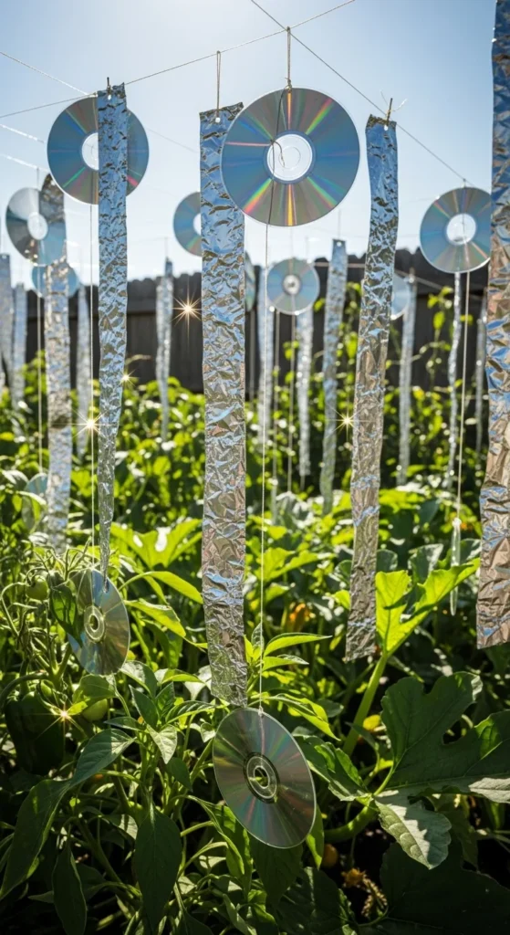 Birds dislike reflective light. Hang foil strips or old CDs around your garden. The flashing reflections scare them away without harm. It’s a clever reuse of old materials.