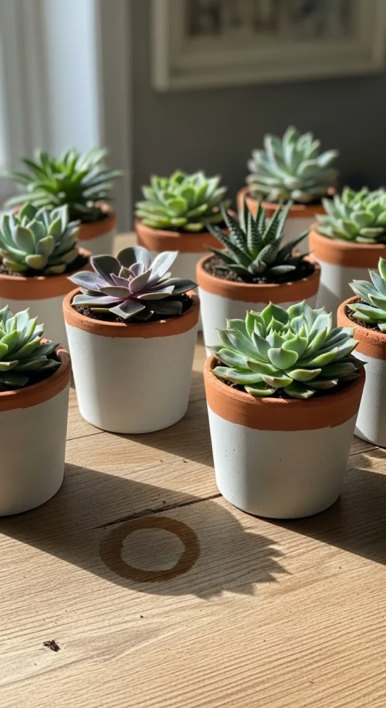 Give your old pots a modern upgrade with a cement dip. Mix cement with water, dip the bottom half of each pot, and let dry. The result is a two-tone effect that looks designer-made. It’s an easy weekend project that adds texture and interest to your plant lineup.