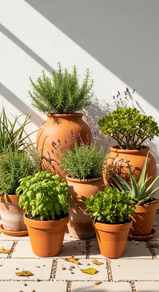 Terracotta pots are practical, affordable, and never go out of style. Their warm tone complements both indoor and outdoor setups. They’re great for plants that prefer dry soil, like succulents or cacti. To make them look custom, dip-paint the rims or brush on limewash for a rustic look. Arrange clusters of different heights on a small stool or step shelf. It adds a Mediterranean touch that feels welcoming and simple.