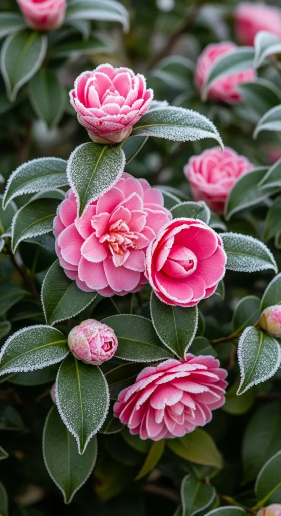 Camellias bloom in late fall and winter, offering elegant flowers in pinks, whites, and reds. They’re stunning in both garden landscapes and vases. Plant them near walls for wind protection. Indoors, float a few blooms in a shallow bowl for a simple, graceful centerpiece.
