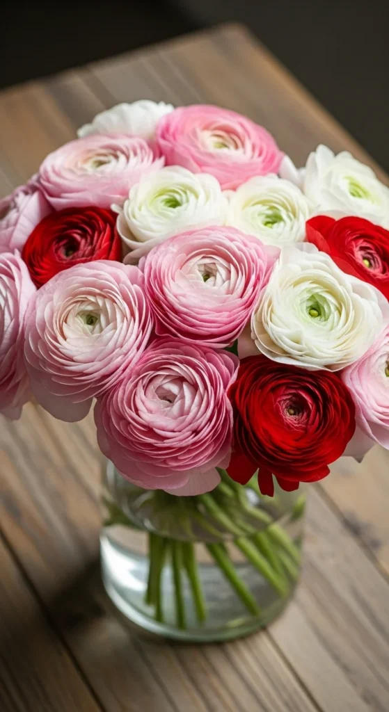 Ranunculus blooms are lush and romantic. Their layered petals resemble miniature roses. They look stunning in glass vases or as part of a mixed holiday bouquet. Keep them cool and well-hydrated to enjoy their beauty for days.